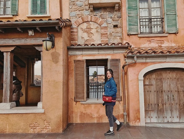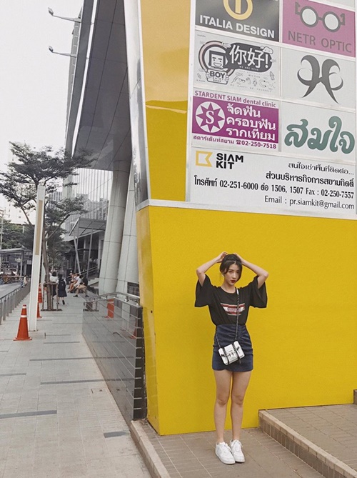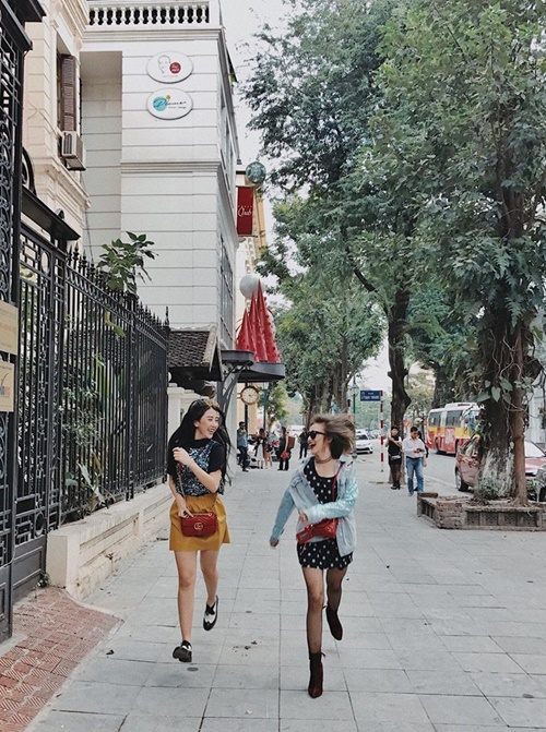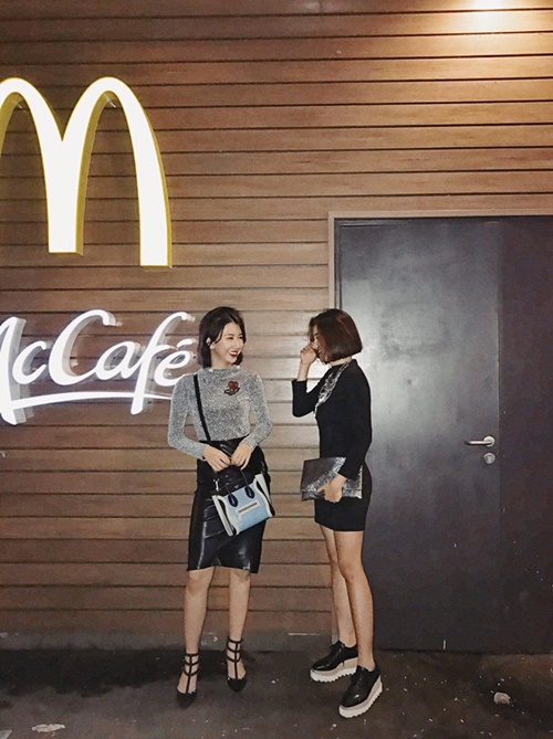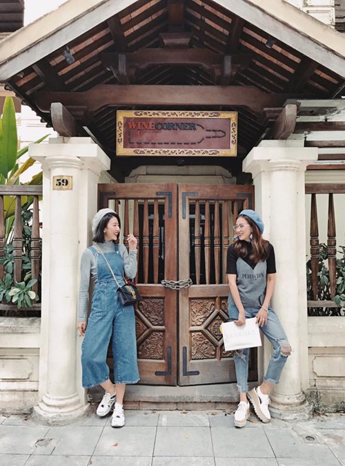 Cô chọn item này tung tăng phố cùng cô bạn thân Salim, cả 2 thể hiện phong cách thời trang đôi khi sử dụng phụ kiện tông xuyệt tông.