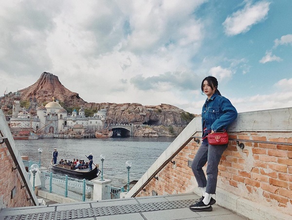 GG Marmont matelassé shoulder bag từng theo Quỳnh Anh du hí tại Nhật Bản cùng hội bạn thân.