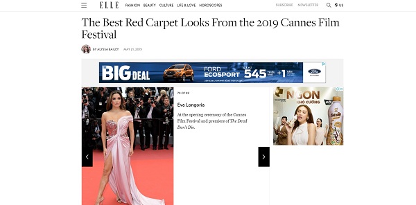 Trên trang báo điện tử của tạp chí thời trang hàng đầu Elle.com thì không hề có hình ảnh của Ngọc Trinh hay bất cứ thông tin nào “đồn thổi” là Ngọc Trinh một trong những người đẹp nổi bật trên thảm đỏ Cannes 2019