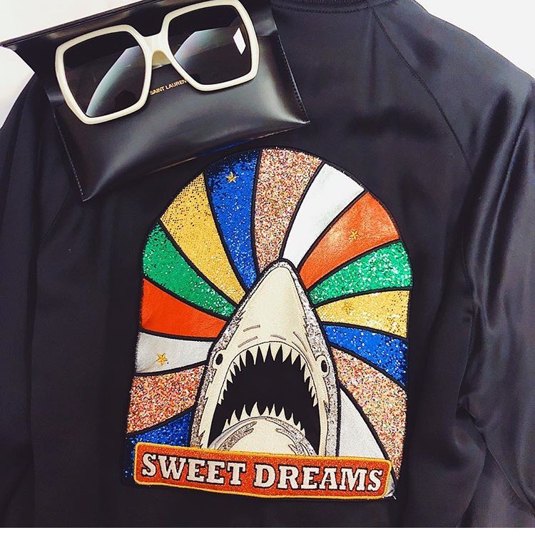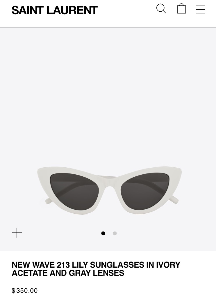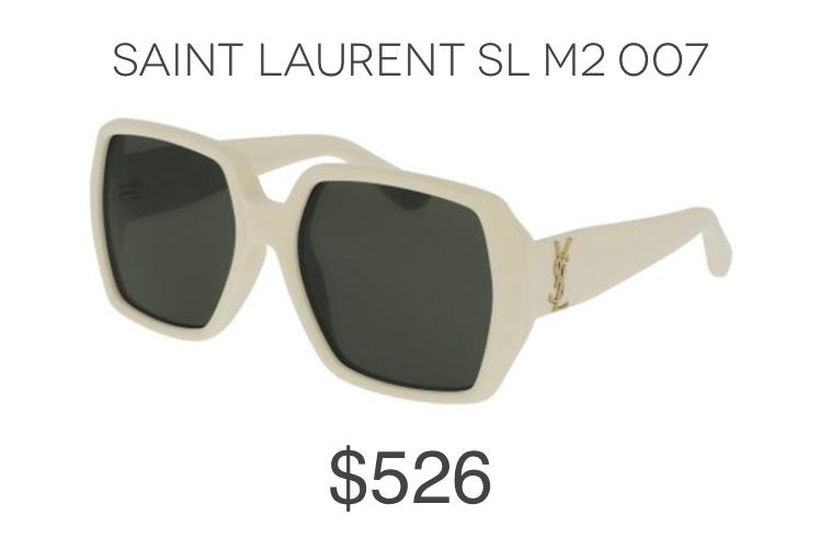 Chiếc kính mắt mèo màu trắng là của Yves Saint Laurent.