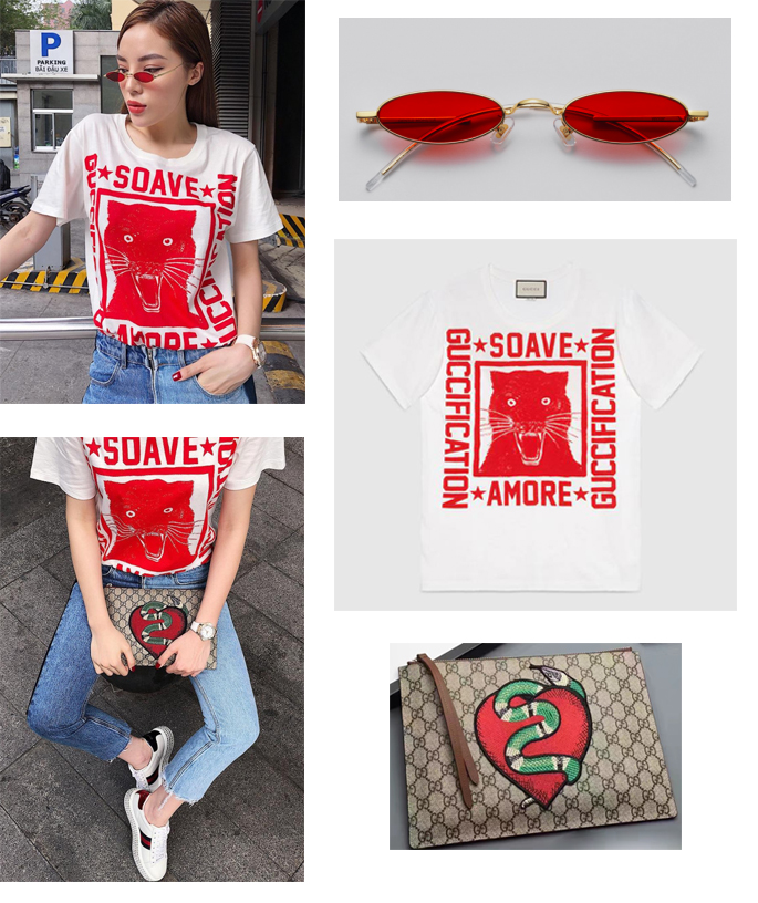 Chiếc túi được Kỳ Duyên cực kỳ yêu thích này có giá hơn 20 triệu đồng và áo thun Gucci “quốc dân” hiện nay đang được bán với giá khoảng 15 triệu đồng.