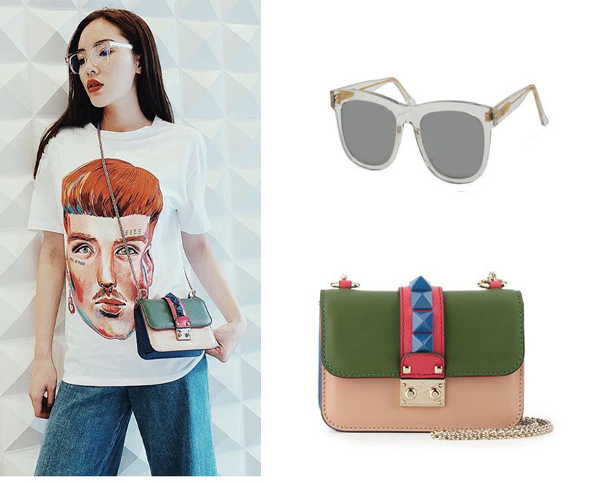 Diện áo phông của Zara có giá gần 600 nghìn nhưng chiếc túi đeo chéo nhỏ nhắn của Kỳ Duyên hiệu Valentino lại có giá tới 48 triệu đồng, chiếc kính hiệu Genlte Monster có giá gần 5 triệu.