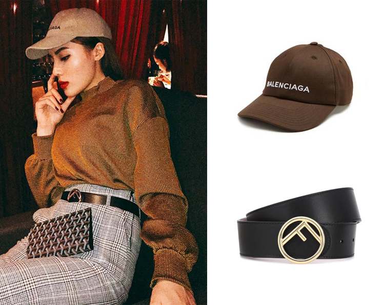 Với set đồ màu nâu đất tưởng như hết sức bình thường này, Duyên cũng nhấn nhá bằng thắt lưng Fendi có giá hơn 6 triệu đồng, mũ Balenciaga có giá tương đương.