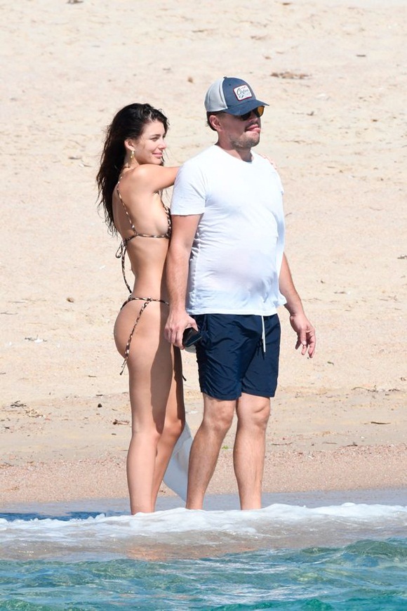 Chân dài sinh năm 1997 vừa qua là tâm điểm chú ý của tay săn ảnh khi khoe body bốc lửa trong thiết kế bikini siêu nhỏ họa tiết da báo bên cạnh tài tử Hollywood Leonardo DiCaprio tại bãi biển ở Corsica, Pháp.