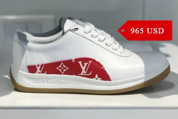 Mẫu giày sneaker trắng lồng ghép logo của 2 thương hiệu Louis Vuitton và Supreme có giá thành 965 USD (khoảng 23 triệu đồng).