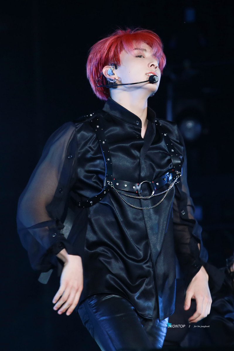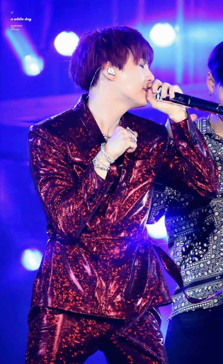 Sẽ thật thiếu sót nếu bỏ qua bộ suit da màu đỏ mà Suga đã mang trong phần biểu diễn ca khúc solo “Seesaw” của mình.