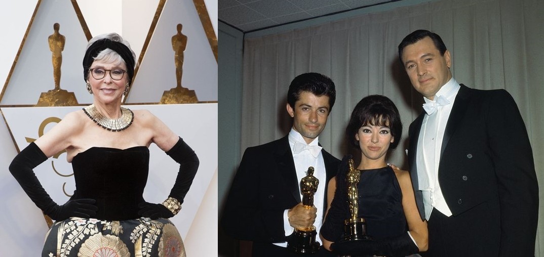 Rita Moreno thu hút sự chú ý khi diện lại chiếc đầm cách đây nửa thập kỉ. Biểu tượng thời trang 86 tuổi này tiết lộ rằng, trên thảm đỏ Oscar năm nay, chiếc áo mà cô ấy mặc là chiếc áo mà cô ấy đã mặc trong buổi lễ năm 1962. Đó là năm cô đoạt giải Nữ diễn viên phụ xuất sắc nhất cho vai Anita trong phim “West Side Story”. Để bớt nhàm chán, cô đã cắt bớt một số chi tiết, biến nó thành chiếc áo cúp ngực quyến rũ, và chiếc váy xòe bên dưới được giữ nguyên, chất liệu vải kimono được lấy từ tận Nhật Bản từ những nàng Geisha.