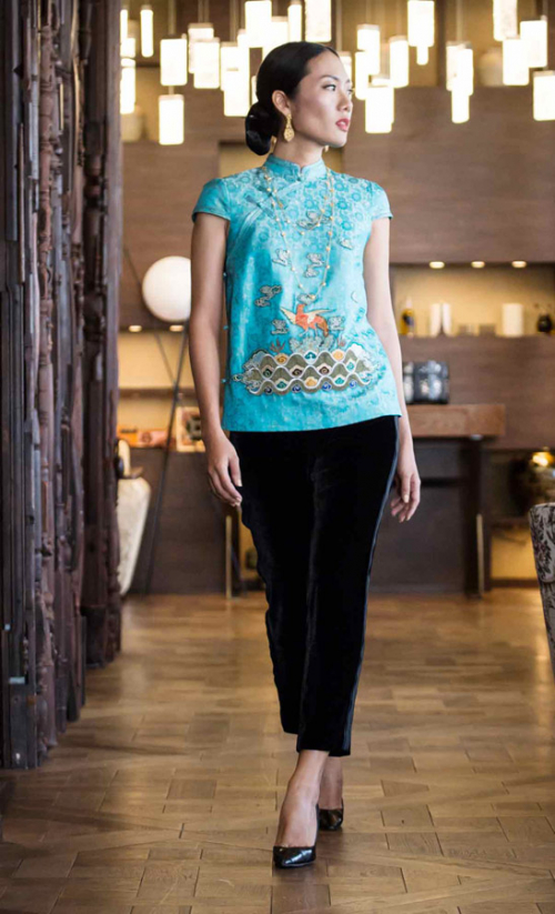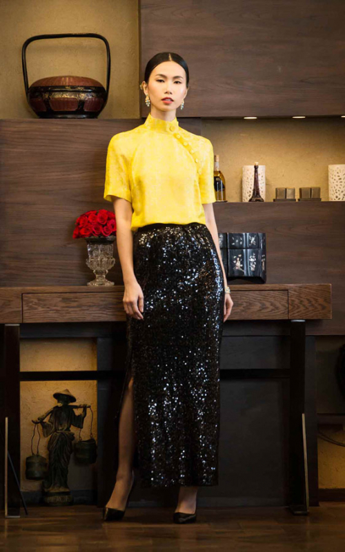 Chất liệu vải gấm Hà Đông cũng được khai thác rất nhiều trong BST lần này.