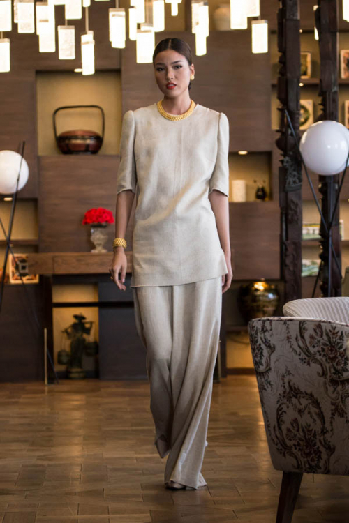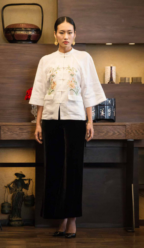Phần lớn, các thiết kế đều lấy cảm hứng từ trang phục thường nhật như áo bà ba với sự biến tấu thành nhiều kiểu dáng khác nhau, nhưng vẫn giữ nét đẹp của người Việt. Ngoài ra, bộ sưu tập còn có sự xuất hiện của tà áo dài truyền thống cùng những bộ âu phục đặc trưng thời kỳ Đông Dương như đầm dài, vest cách điệu… chính cách xử lý đường may tinh tế, chi tiết thêu tỉ mỉ đã mang đến sự sang trọng, nhẹ nhàng đúng chất Cô ba Đông Dương thời hiện đại.