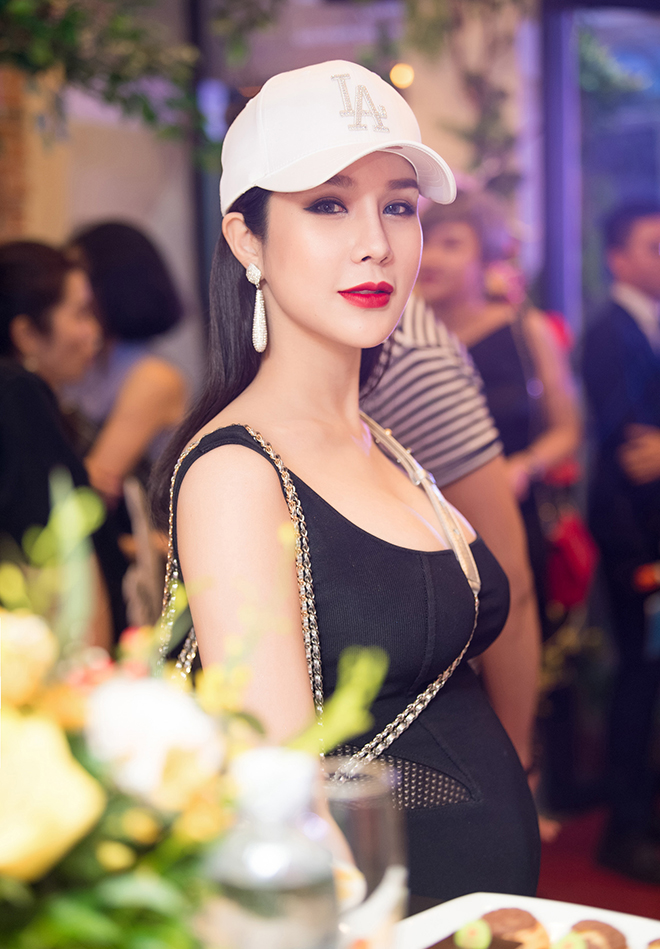Cô hút chặt mọi ánh nhìn với những đường cong ấn tượng của bà bầu. Diệp Lâm Anh mặc váy đen bó sát khoe bụng tròn cong quyến rũ và vòm ngực đầy đặn. Người đẹp vẫn rất cá tính với mũ cap và bốt cao màu trắng tiệp màu.