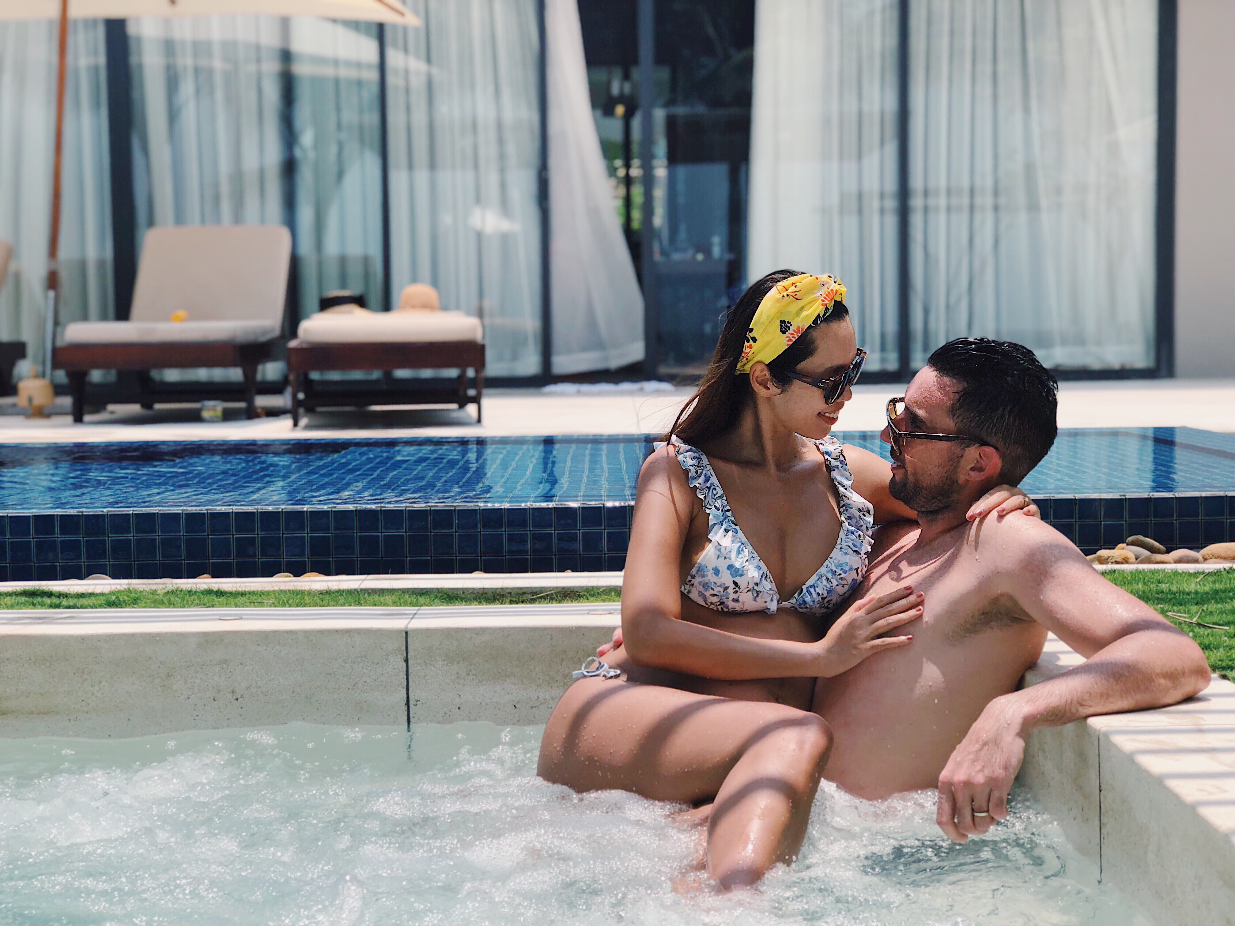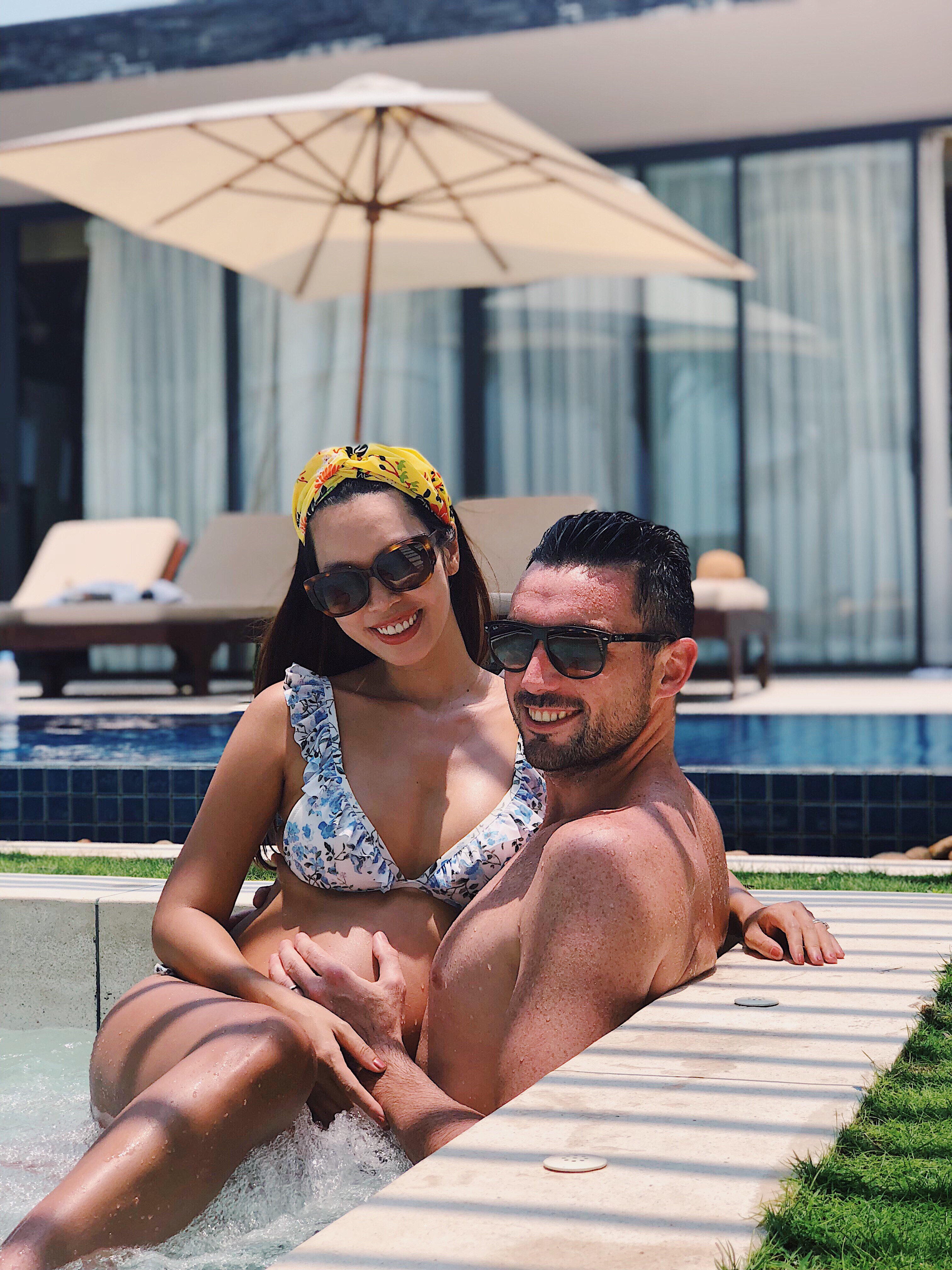 Sau những chuyến công tác bộn bề, những sự kiện tại thành phố sầm uất, vợ chồng nàng bầu siêu mẫu nóng bóng của showbiz Việt đang có chuyến nghỉ ngơi dài tại thành phố biển Đà Nẵng.