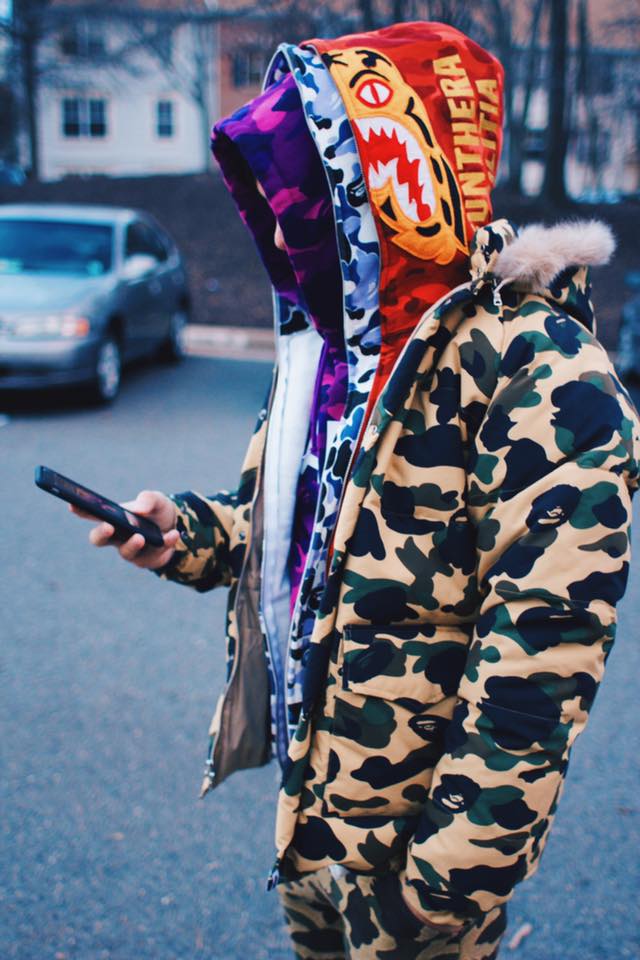 Dễ thấy Camo là hoạ tiết đặc sản mỗi khi nhắc BAPE và đương nhiên chúng luôn được The Weeknd “hốt” đi dù được biến tấu kiểu gì.
