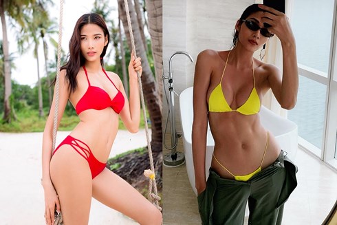 Tuy nhiên mới đây, chân dài đã khiến khán giả “choáng ngợp” khi diện bộ bikini nóng bỏng, khoe khuôn ngực gợi cảm. Dù biết rằng thời gian này Hoàng Thùy đang tích cực tập gym cải thiện vóc dáng nhưng điều này cũng khiến nhiều người bất ngờ.