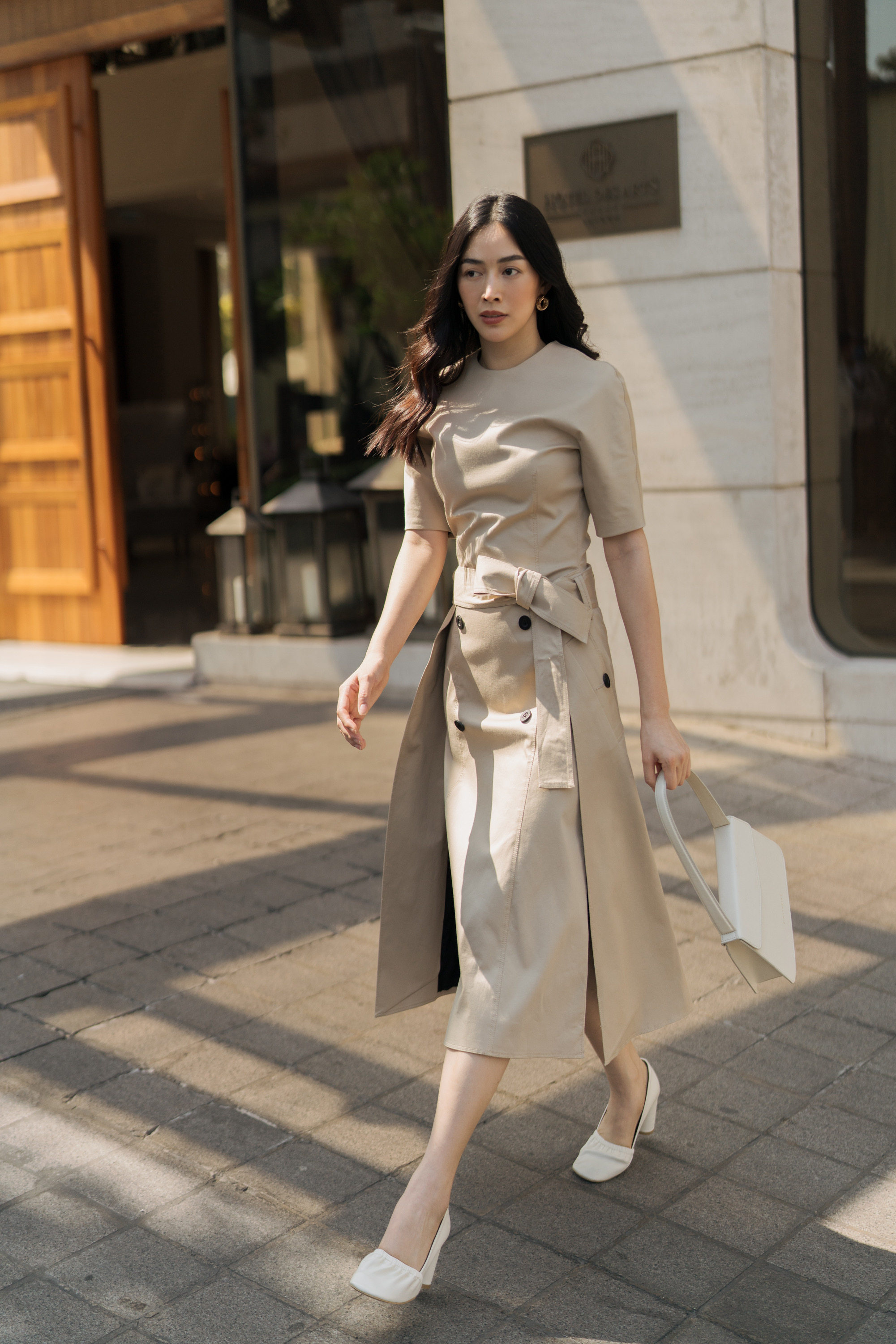 Váy măng tô biến tấu với những nút thắt sang trọng hiện đại