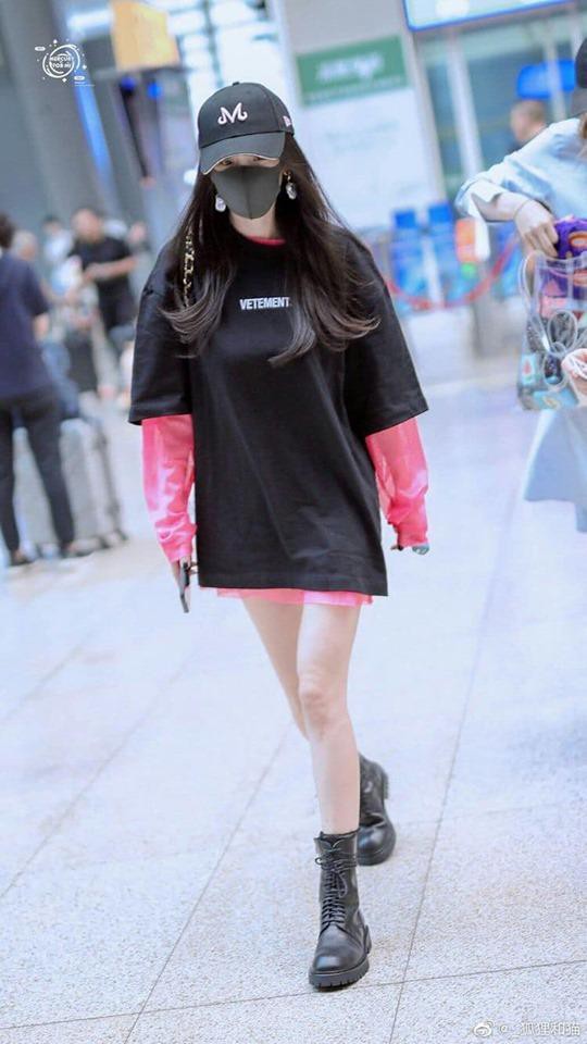Ở Cbiz, Dương Mịch là người đẹp cực kì mê style giấu quần và cô thường xuyên diện các trang phục này tại sân bay