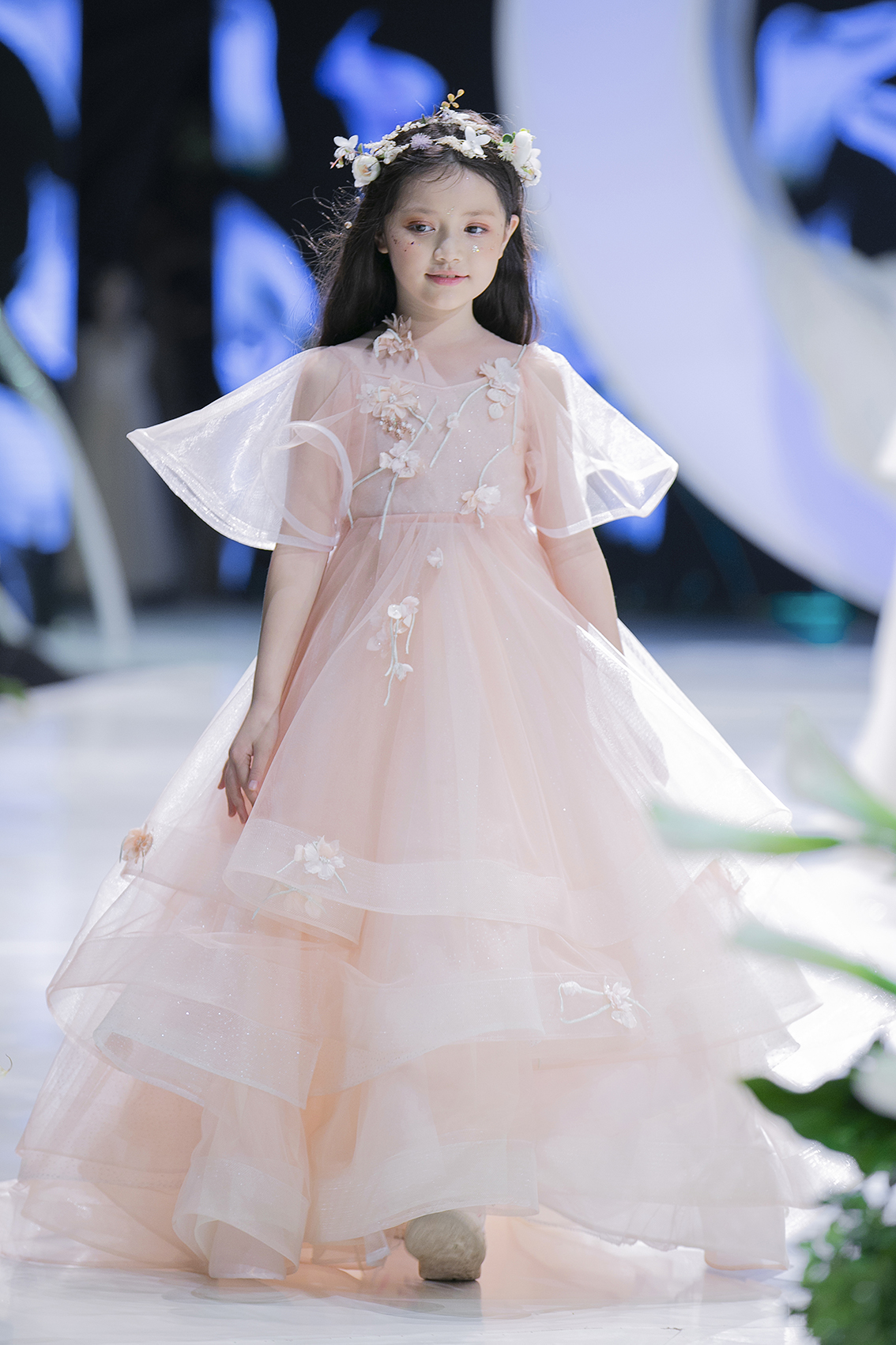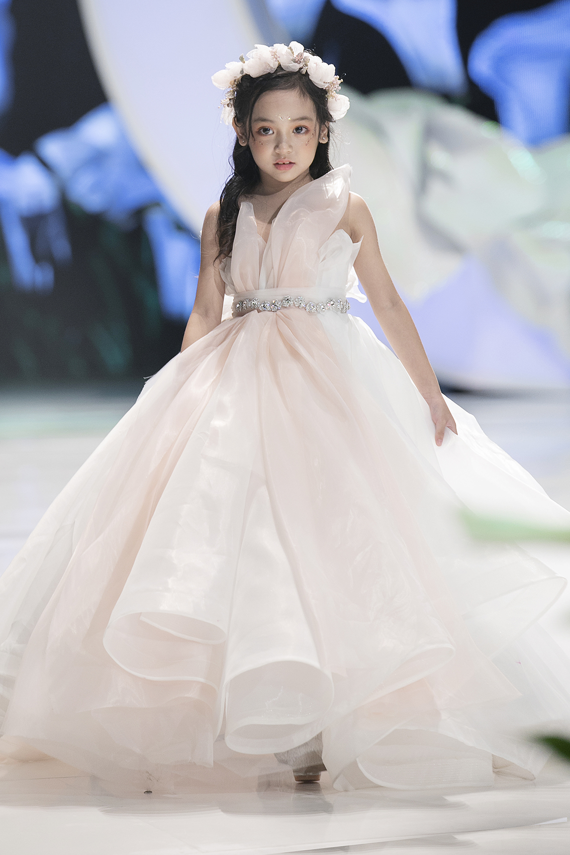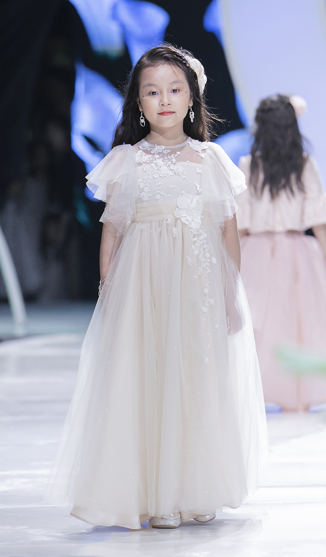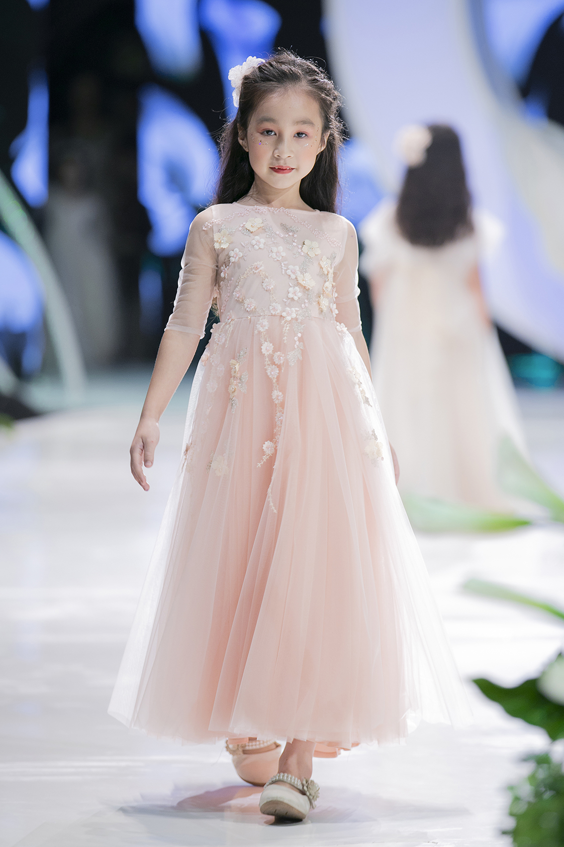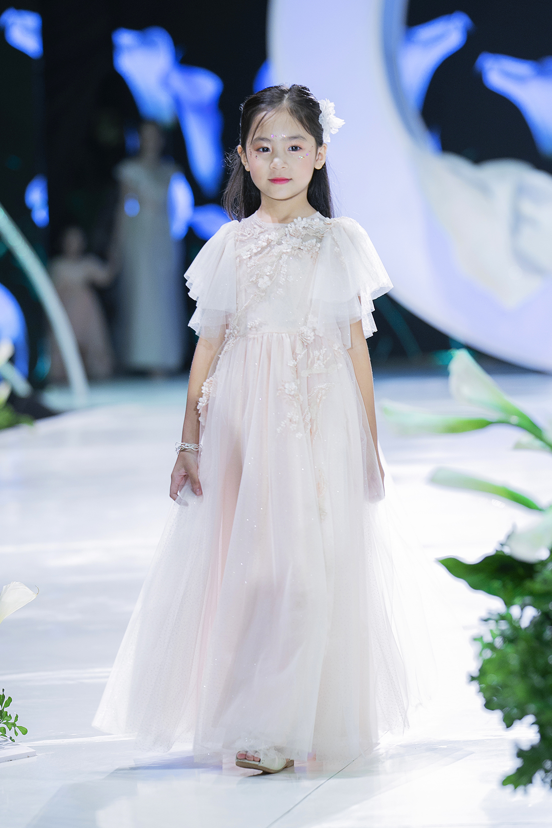 Với những màu sắc nhẹ nhàng như trắng, hồng - những màu sắc được các bạn nhỏ yêu thích chắc chắn sẽ là món quà tuyệt vời dành cho các thiên thần nhỏ đáng yêu. Trong đêm trình diễn, những bạn nhỏ được khoác lên mình chiếc váy công chúa này đều vô cùng thích thú. Những niềm vui được toát lên trong nụ cười rạng rỡ, ánh mắt đầy trong sáng đáng yêu của các người mẫu nhí. Vedette của BST là một cái tên vô cùng quen thuộc - cô bé xinh đẹp Chu Diệp Anh.