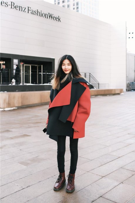 Cùng lựa chọn áo khoác màu sắc nổi bật làm điểm nhấn, nhưng cách lựa chọn chất liệu mềm mại của Mâu Thủy lại đem đến hình tượng dịu dàng, dễ ứng dụng hơn.