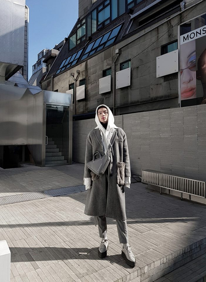 Trong chuyến sang Hàn Quốc tuần qua, Kelbin Lei đã phải chống chọi với cái lạnh âm độ cắt da cắt thịt. Tuy nhiên, thời tiết không làm ảnh hưởng đến phong độ đẹp của anh chàng. Diện outfit tông màu ghi bắt mắt, Kelbin Lei sử dụng chiếc túi Balenciaga hình tam giác độc đáo nổi tiếng của hãng làm điểm nhấn.