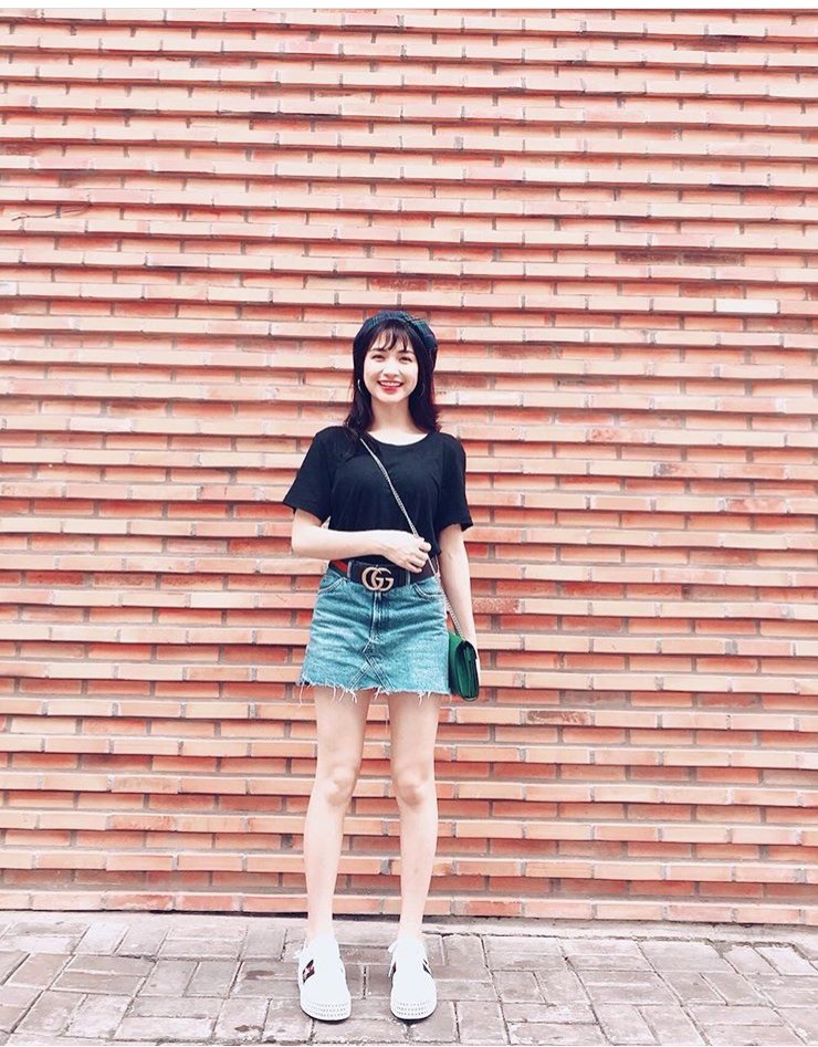 Chiếc cltuch màu xanh nhỏ nhắn của Hòa Minzy có giá khoảng 1500$. Chưa kể cô cũng diện chiếc thắt lưng Gucci “quốc dân” hiện nay cùng đôi sneaker mới tinh.