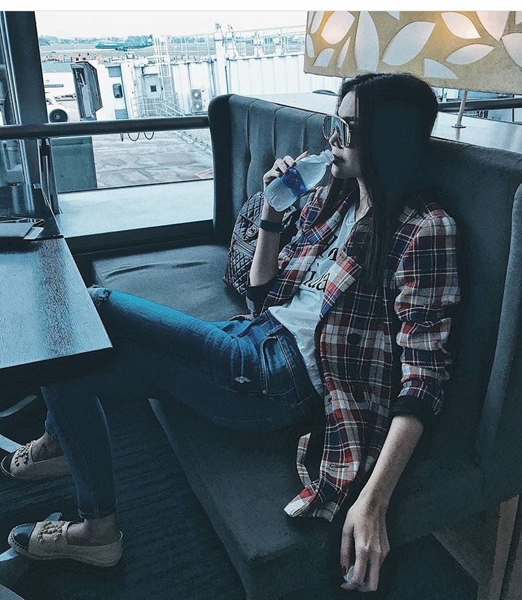 Tuần qua, Thanh Hằng vẫn giữ vững phong độ menswear đẹp mắt của mình. Khác với những lần xuất hiện sang chảnh trong sự kiện, thời trang sân bay của Thanh Hằng đơn giản nhưng vẫn rất đẹp mắt. Cô diện áo khoác kẻ ca rô kết hợp với đôi slip on của Chanel tạo dáng vẻ khỏe khoắn.