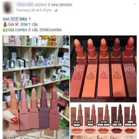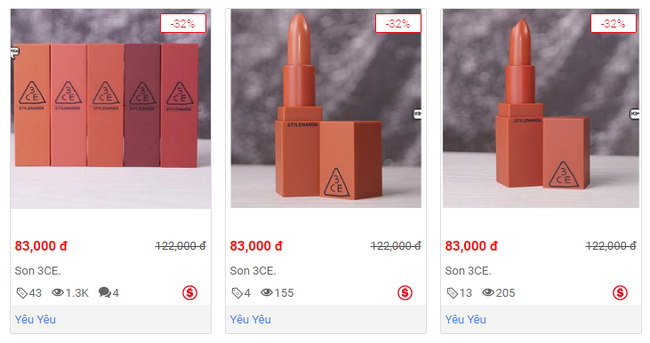 Ngay cả trên nhiều website mua bán lớn, son fake 3CE vẫn được bày bán vô tư với mức giá rẻ tới “giật mình”!