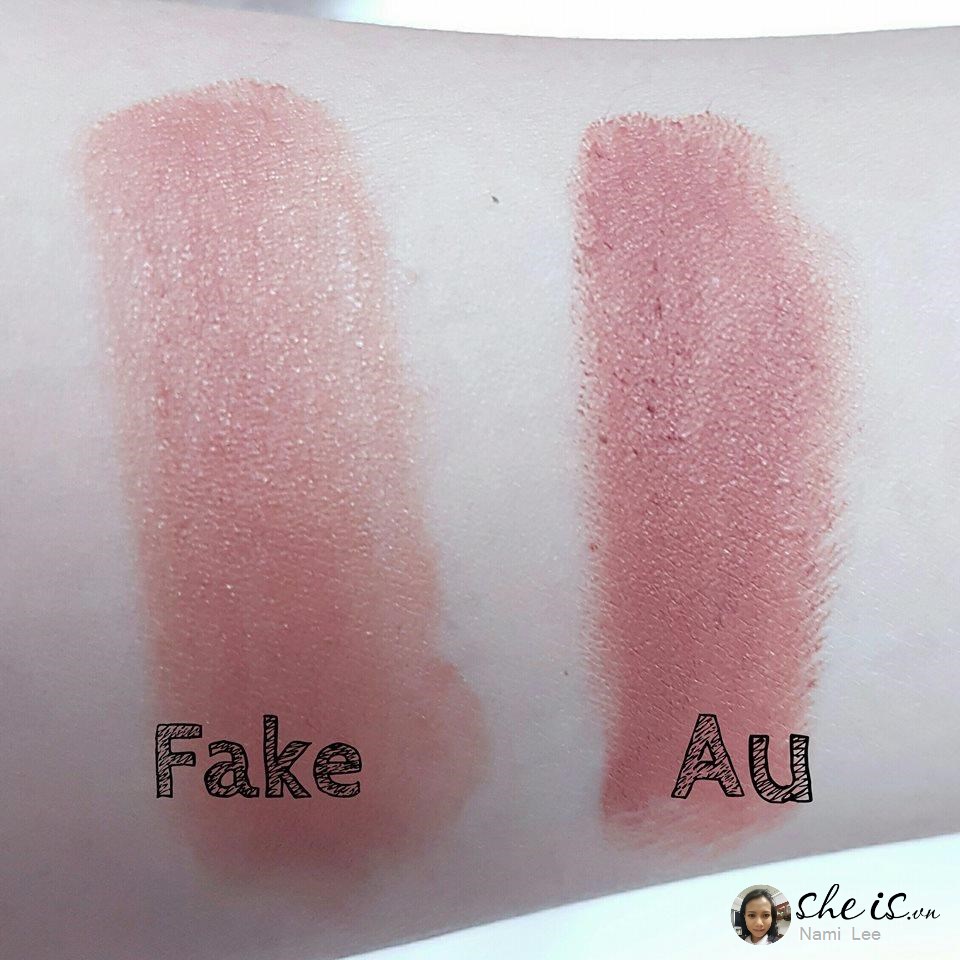 Về mùi thơm, son auth không có mùi trong khi son fake thì lại có mùi thơm nhẹ.