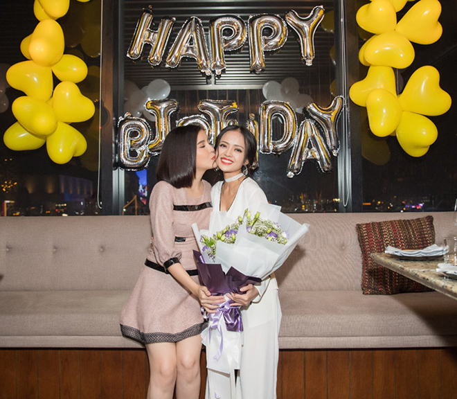 Tối qua, 14/8 diễn viên đang nổi Cao Thái Hà đi sinh nhật cô bạn gái thân thiết là người đẹp Thanh Trúc. Cao Thái Hà xuất hiện với bộ đầm màu hồng babi rất thanh lịch và ngọt ngào.