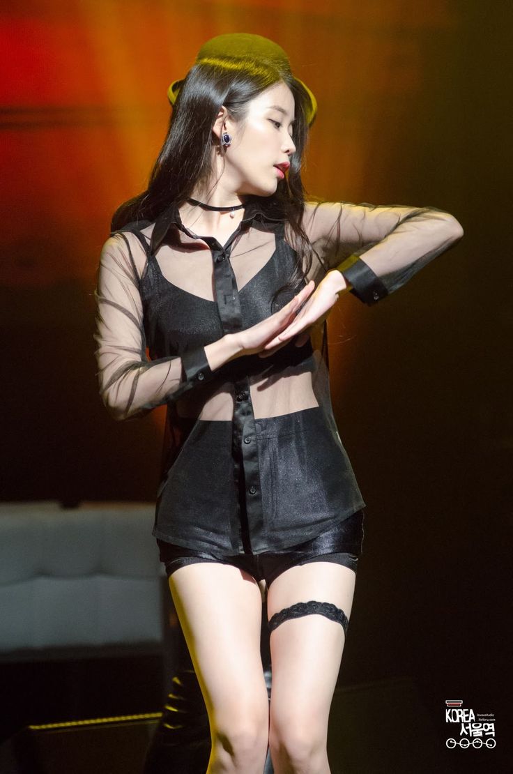 Lee Hi chỉ cao 1m54 nhưng rất tự tin khi mặc đồ bó sát thân hình. Item yêu thích của cô nàng là váy màu đen. Trang phục màu đen làm cô trông thon gọn và sang trọng hơn.