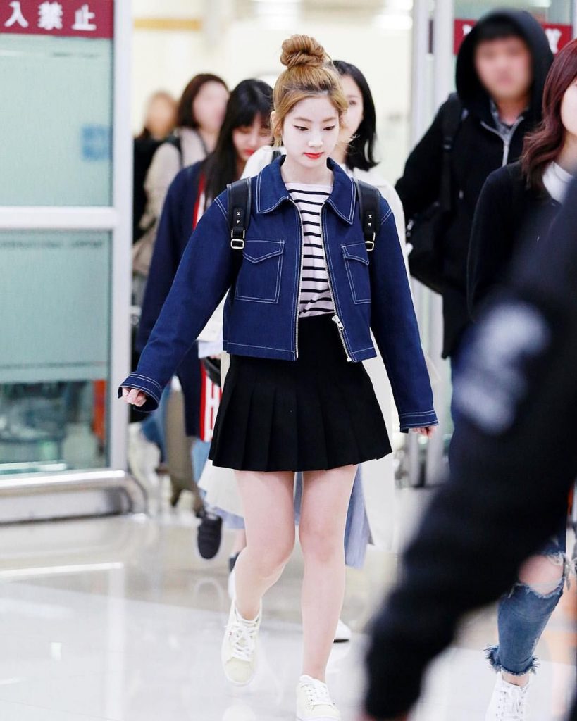 Cô nàng là thành viên nấm lùn nhất nhóm nhưng style thì chuẩn không cần chỉnh. Dahyun hay mặc quần áo oversize để che bớt khung xương nhỏ nhắn của mình. Cách ăn mặc như vậy cũng tạo nên vẻ dễ thương cho bạn. Tuy nhiên không nên lạm dụng quá. Nếu từ đầu đến chân đều mặc đồ quá khổ, nhìn bạn sẽ rất lôi thôi.