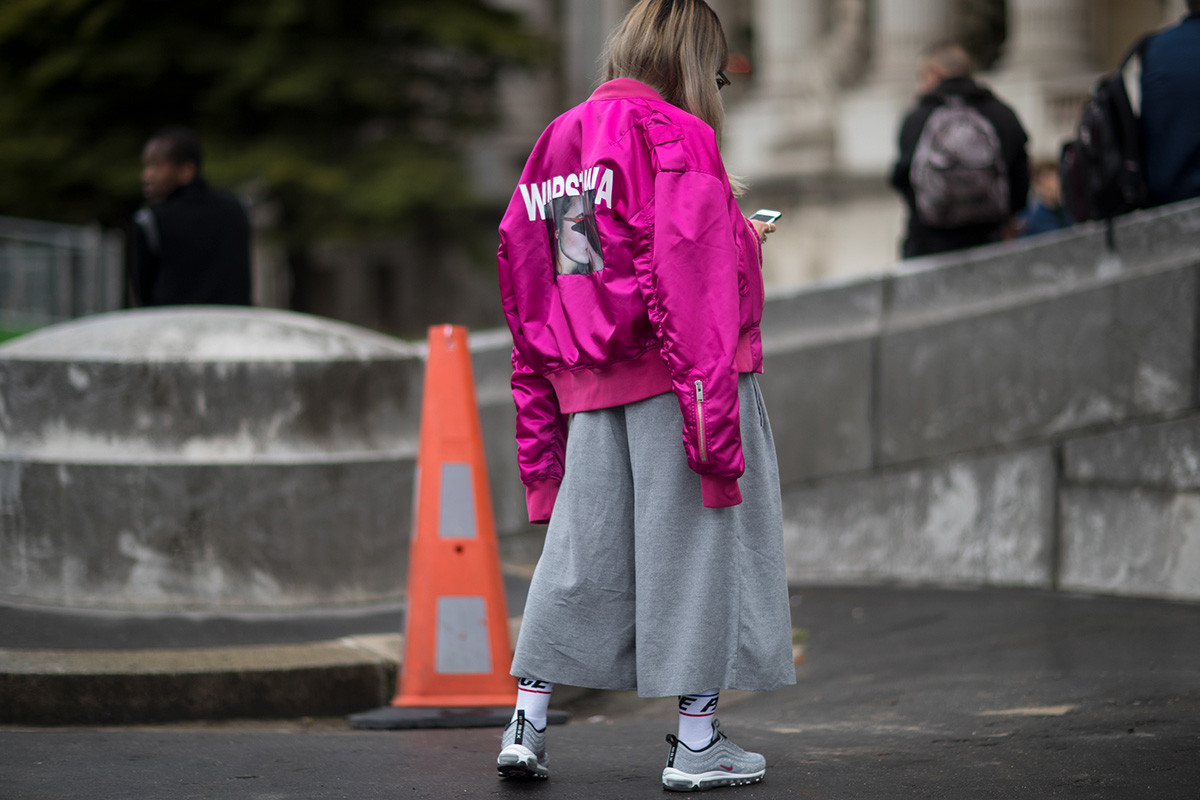Bomber kết hợp với đôi Air max sneaker luôn là combo hoàn hảo. Năm nay, áo bomber được các tín đồ thời trang sử dụng triệt để hơn, chất liệu sang trọng và màu sắc cũng bắt mắt hơn so với năm 2016.