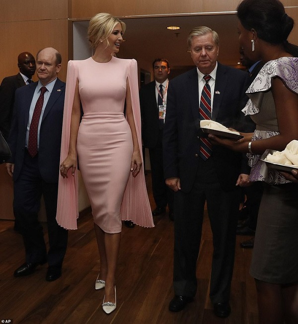 Ivanka Trump xinh đẹp, nữ tính trong thiết kế váy hồng phấn