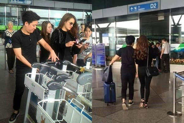 Phong cách thời trang sân bay cá tính của cặp đôi. Họ diện nguyên cây đen từ áo đến quần jean và giày.