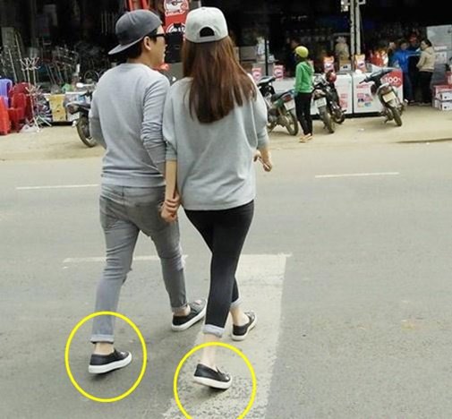 Không chỉ áo quần mà đến giày cũng sắm chung 1 kiểu mới chịu.
