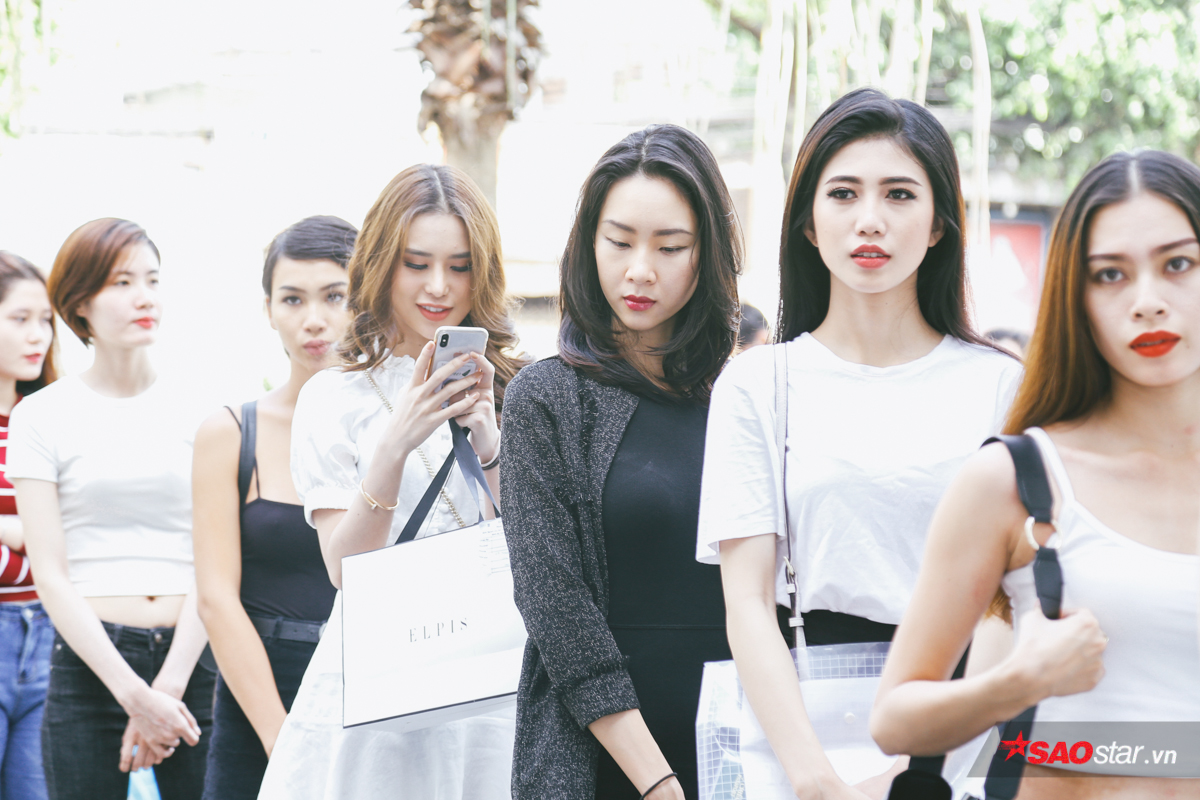 Các thí sinh nữ hồi hộp chờ đợt lượt ghi danh của mình.