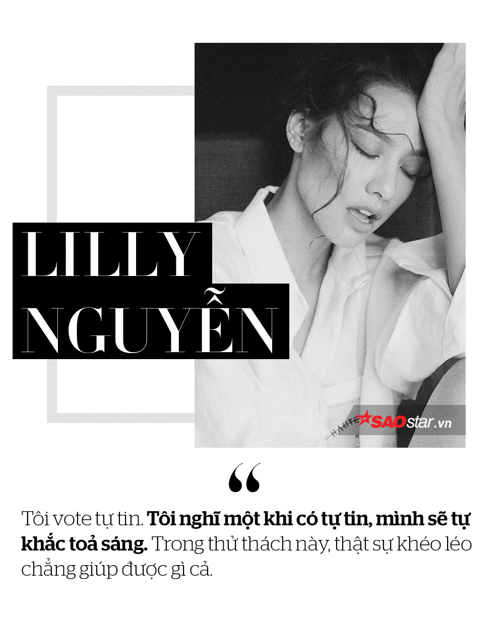 Khi được hỏi, Lilly Nguyễn - cô gái gây mê hoặc nhất The Face mùa 1 đã nói: “Tôi vote tự tin. Tôi nghĩ một khi có tự tin, mình sẽ tự khắc toả sáng. Trong thử thách này, thật sự khéo léo chẳng giúp được gì cả. Vì không được tuỳ chọn nên đôi lúc khó khăn với váy quá khổ, hoặc khi bước lên sàn băng là chấp nhận “dọn dẹp gọn gàng” như tôi, cố gắng mấy vẫn không tránh được. Nếu biết không tránh được, cứ tự tin trước còn lại tính sau“.