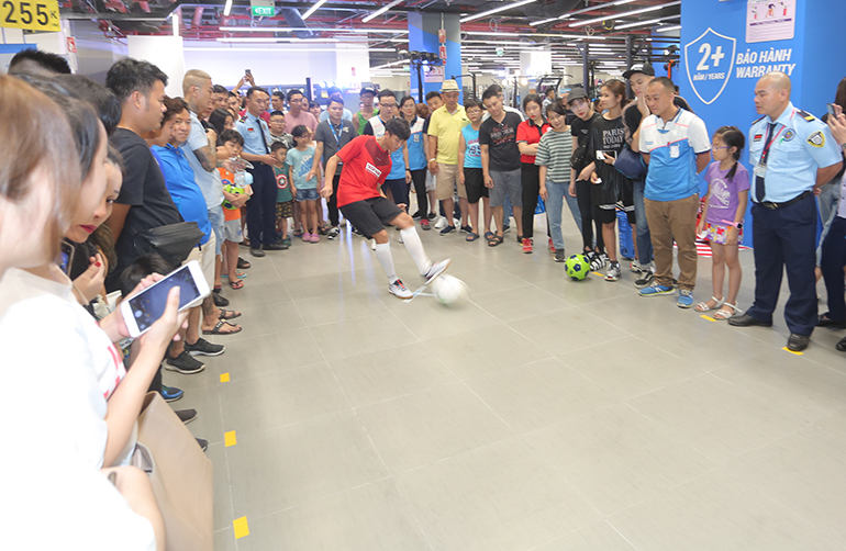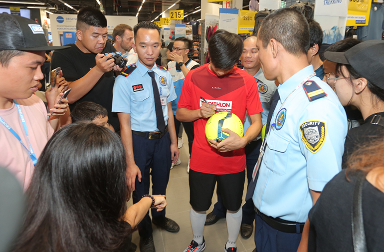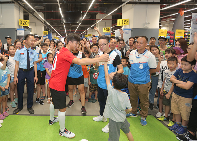 Vừa qua, một trung tâm thời trang - đồ dùng thể thao có quy mô hoành tráng đã được khai trương tại Hà Nội. Tới mua sắm tại cửa hàng trong ngày đầu khai trương, cầu thủ U23 Viêt Nam - Phan Văn Đức đã vui vẻ trong vòng vây của người hâm mộ.