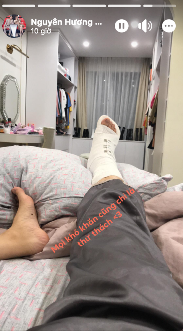 Nàng hậu Hương Giang update loạt ảnh mới nhất trên trang cá nhân với đôi chân bó bột