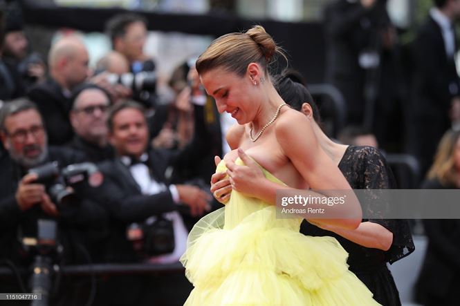 Không lâu sau, chân dài Brazil gặp sự cố bị tuột váy, để lộ vòng một trước nhiều người trên thảm đỏ Cannes 2019