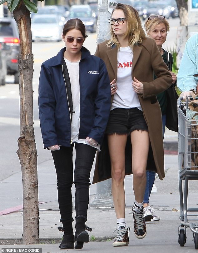 Chân dài Anh Cara Delevingne và bạn gái LGBT Ashley Benson cũng đi cùng nhau