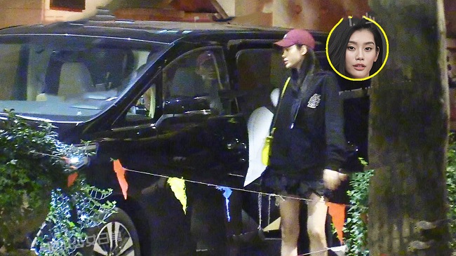 Siêu mẫu sinh năm 1989 trong set đồ đen đơn giản đội mũ lưỡi trai khi xuống xe, lộ vòng hai to bất thường
