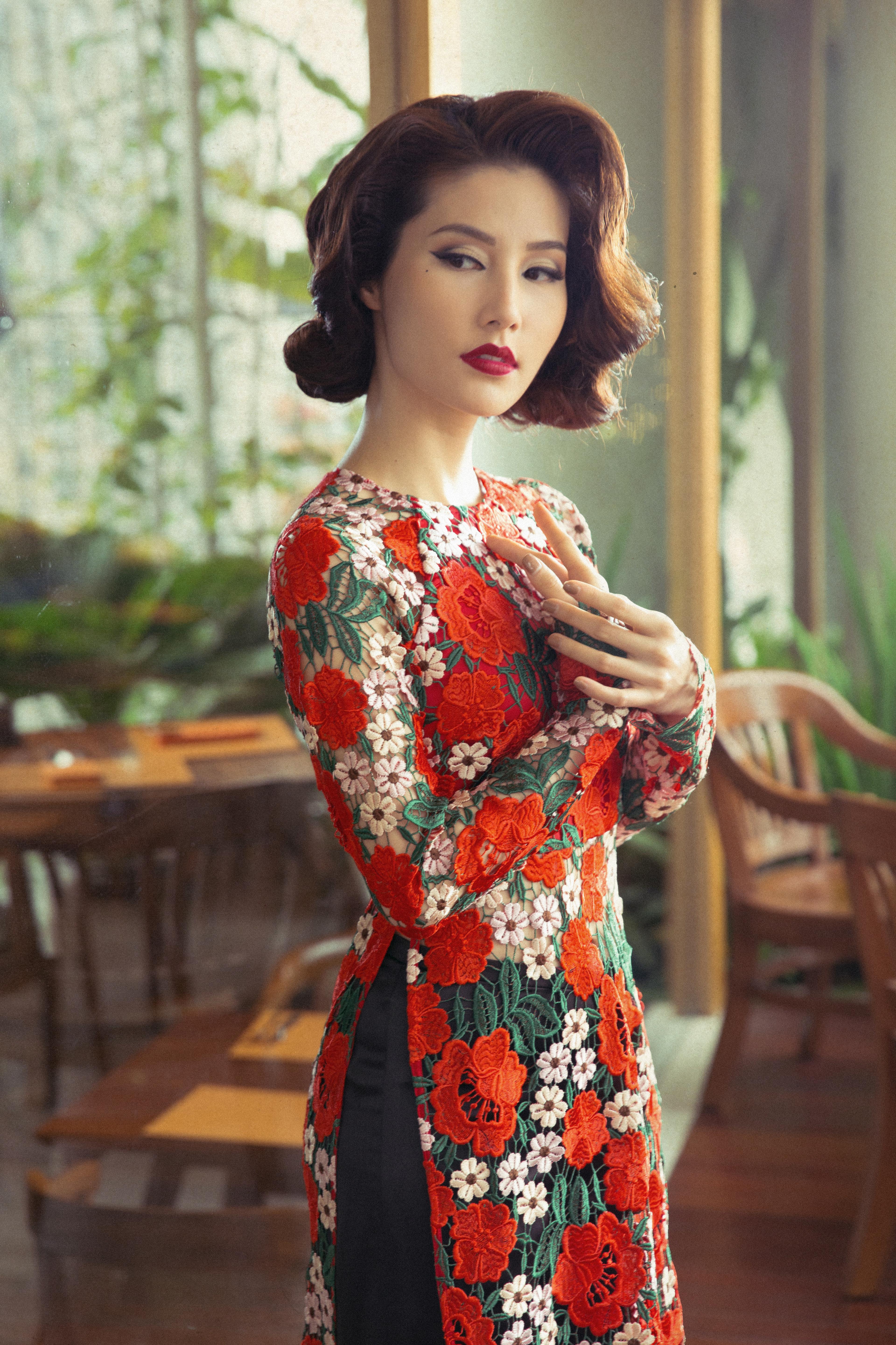 Với đôi môi đỏ cùng kiểu tóc xoăn đặc trưng, Diễm My 9x đã có màn hóa thân thành công thành hình tượng người phụ nữ thập niên 60.
