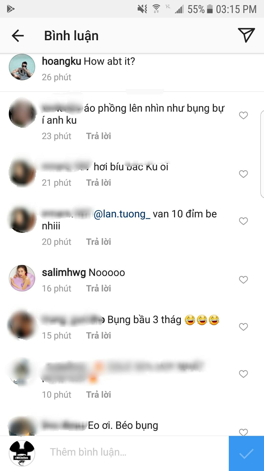 Nhiều người, trong đó có cả hot girl Salim cho rằng set đồ này hoàn toàn không giúp Hoàng Ku tôn dáng, ngược lại, phần áo lùng phùng còn khiến anh chàng trông béo hơn rất nhiều. Stylist Hà thành nên quay lại phong cách lịch lãm trước kia thì sẽ đẹp hơn rất nhiều.