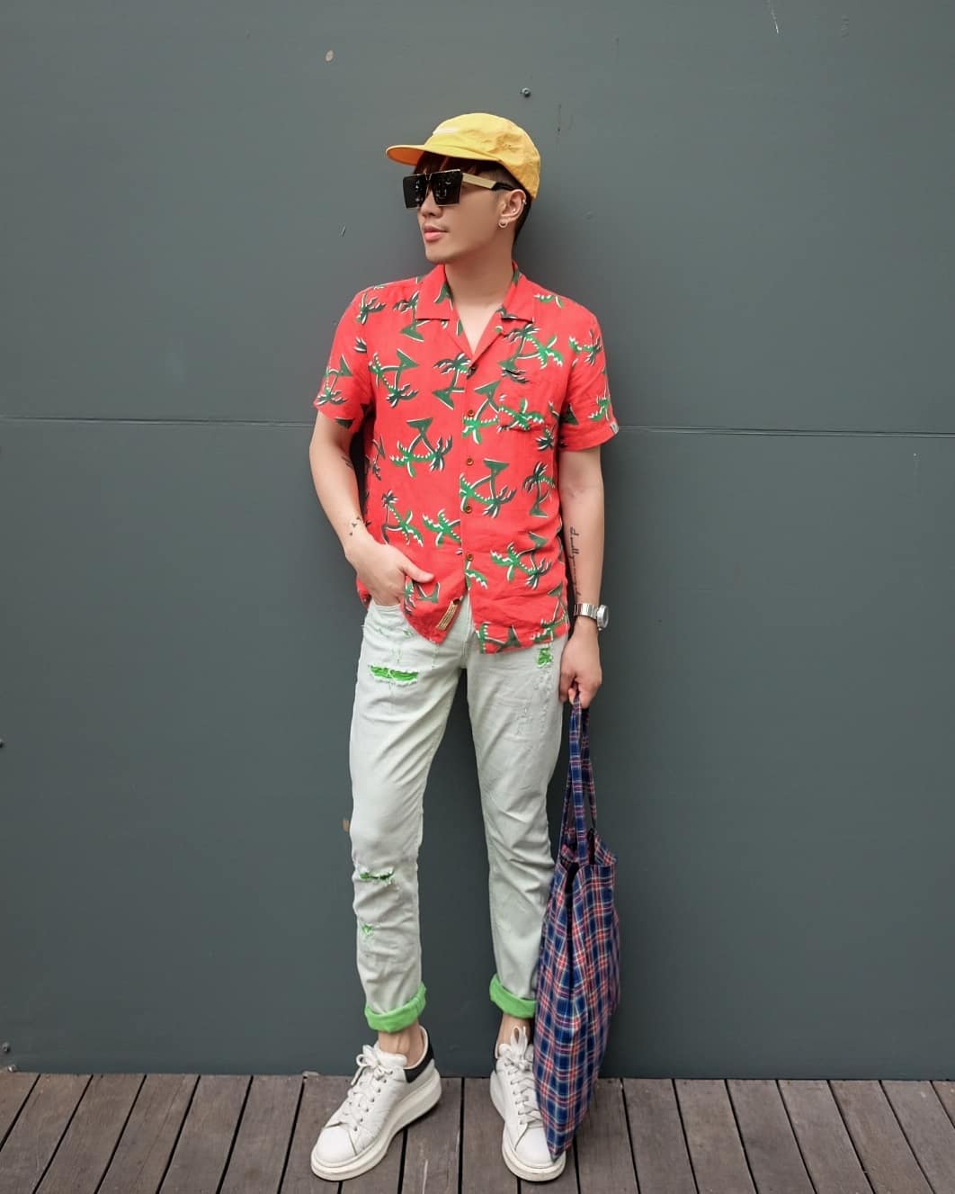 Bộ cánh màu sắc là lựa chọn của Lê Minh Ngọc khi xuống phố. Anh chàng sử dụng túi tote họa tiết ca rô, đi cùng mắt kính gọng siêu nhân trị giá hơn 8,2 triệu đồng của Irresistor làm điểm nhấn.