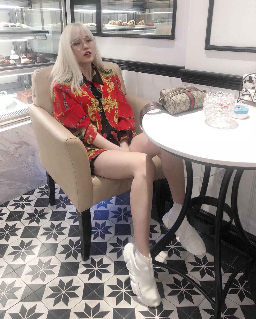 Thiều Bảo Trâm khoe khéo làn da trắng muốt khi diện áo sơ mi theo style giấu quần. Bạn gái cũ của Sơn Tùng cũng sử dụng đôi giày Balenciaga và túi Gucci nhằm tăng điểm cá tính.