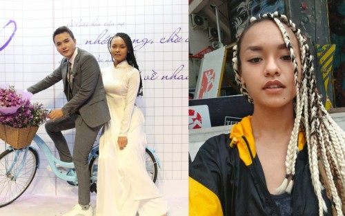 Áo dài có lẽ là trang phục 'lệch tông' nhất mà Mai từng diện cùng kiểu đầu này.