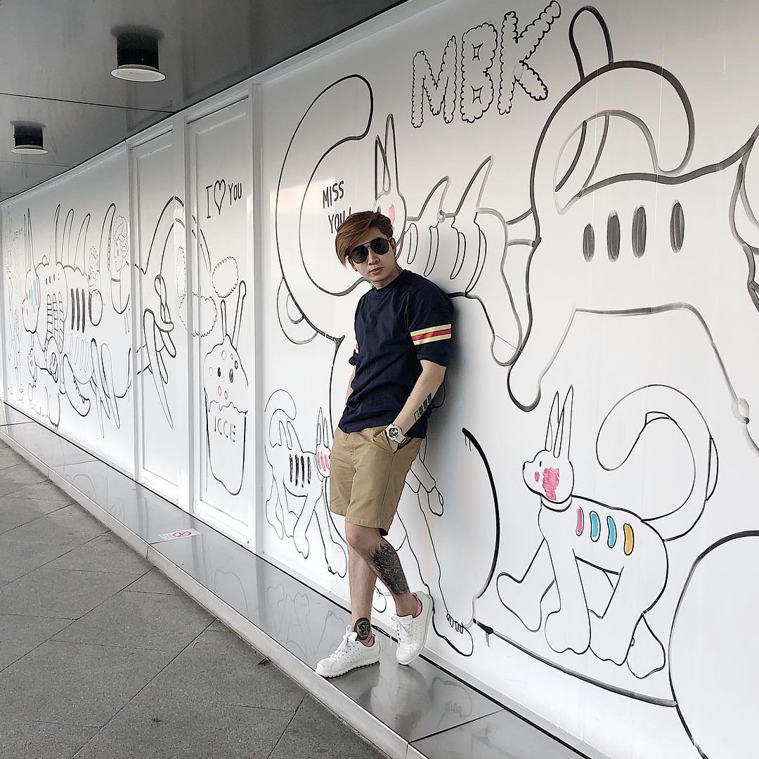 Có vẻ ,gần đến mùa hè nên những chàng trai cũng ưa chuộng các set đồ đơn giản thoải mái. Chi Dân tự tin xuống phố với áo phông, quần short đi cùng đôi sneaker thể thao.