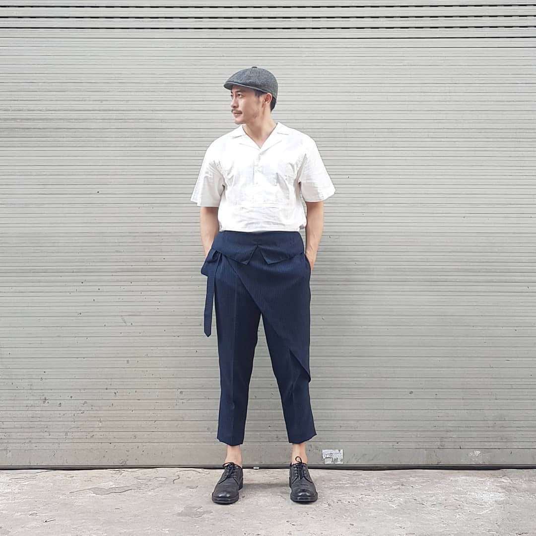 NTK Trương Thanh Long lại ăn diện hơn chút khi mặc áo linen đi cùng quần bắt chéo vạt theo style Châu á. Giày tây và mũ beret cũng được anh phối cùng, tạo nên tổng thể retro.