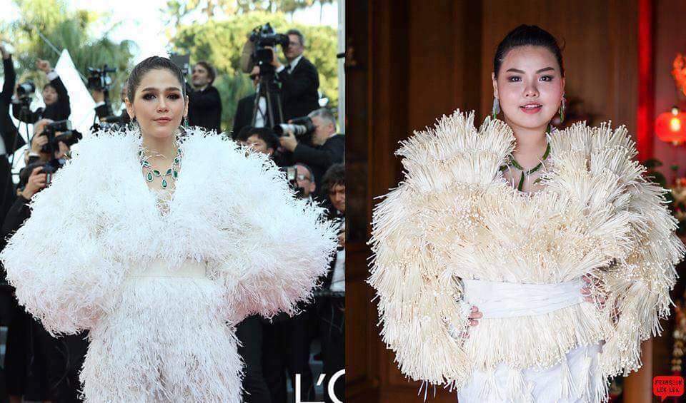 Xong rồi thì bay tới Cannes với chiếc váy làm bằng xà lách này.