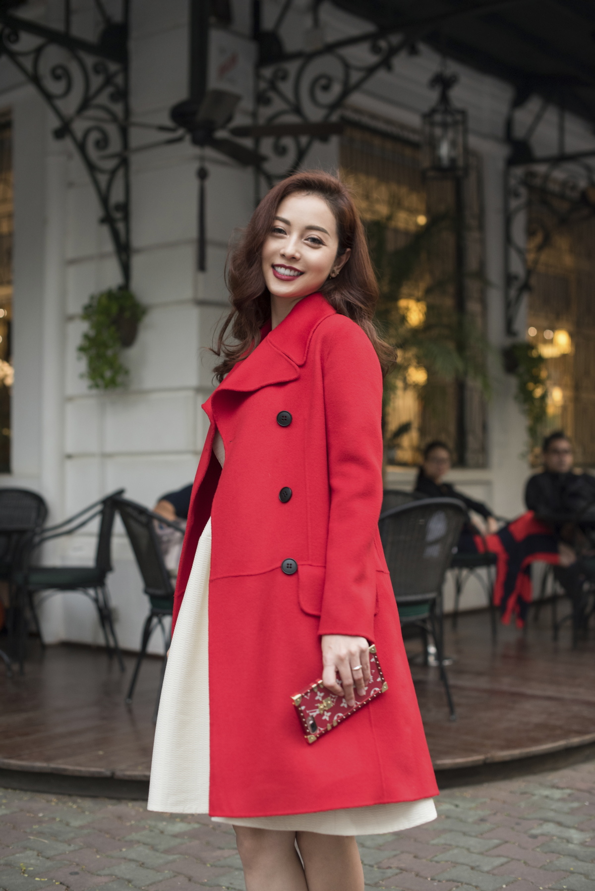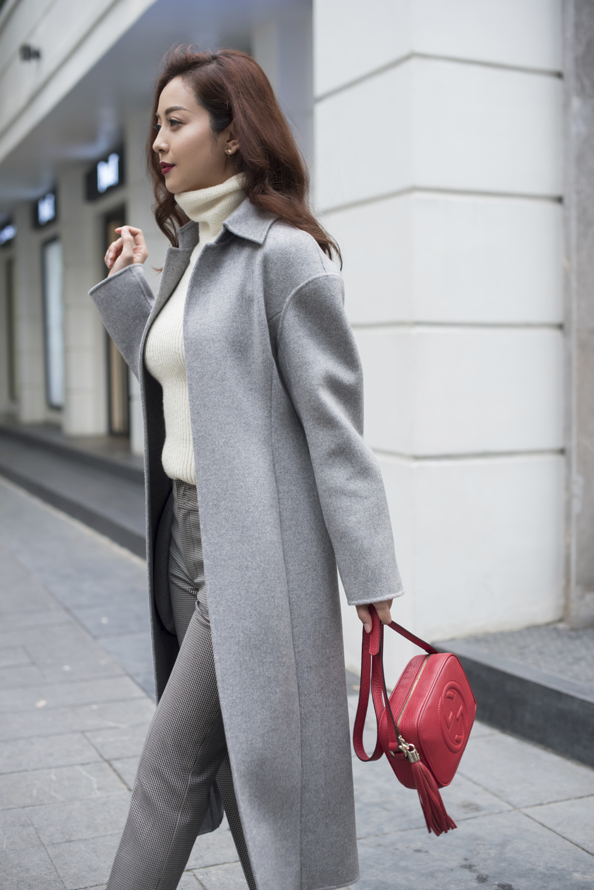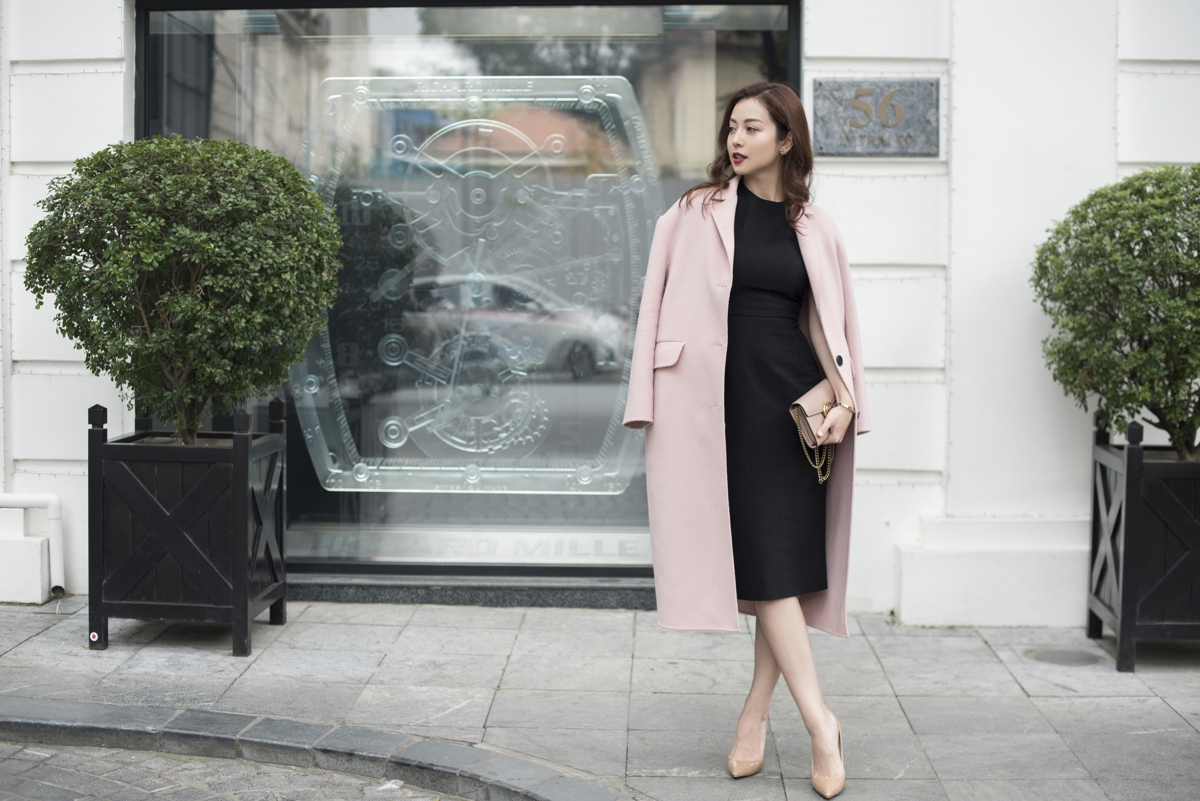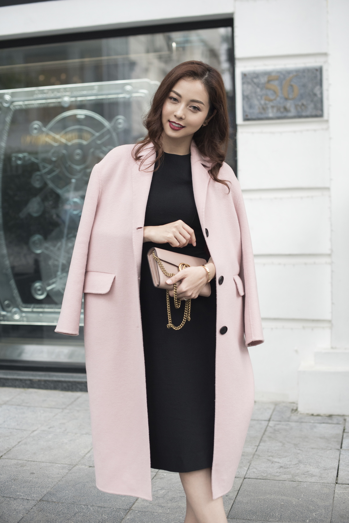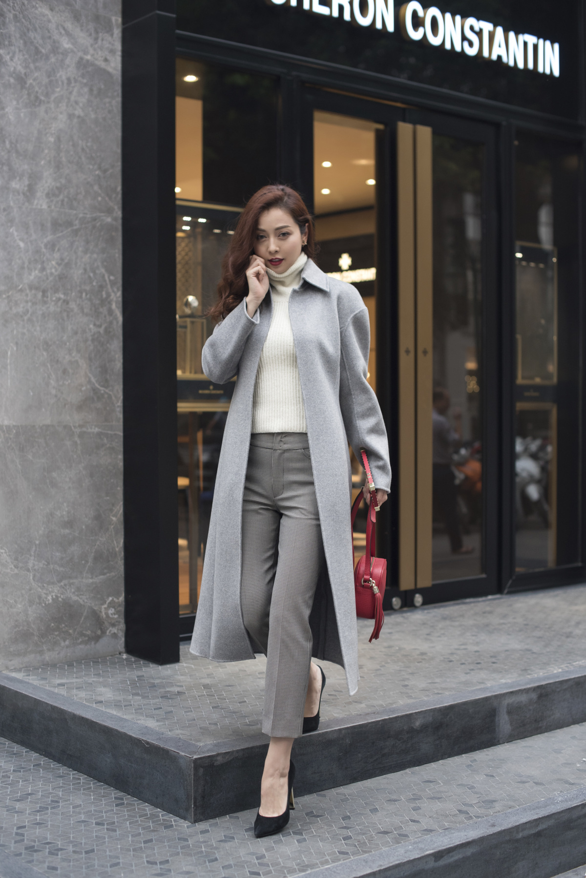Kết hợp cùng chiếc áo khoác dài thì Jennifer Phạm đã mang đến một câu chuyện khác, nữ tính mà không hề nhàm chán.