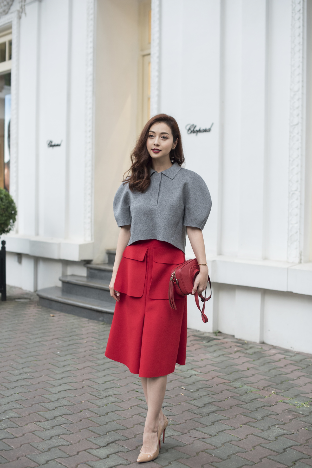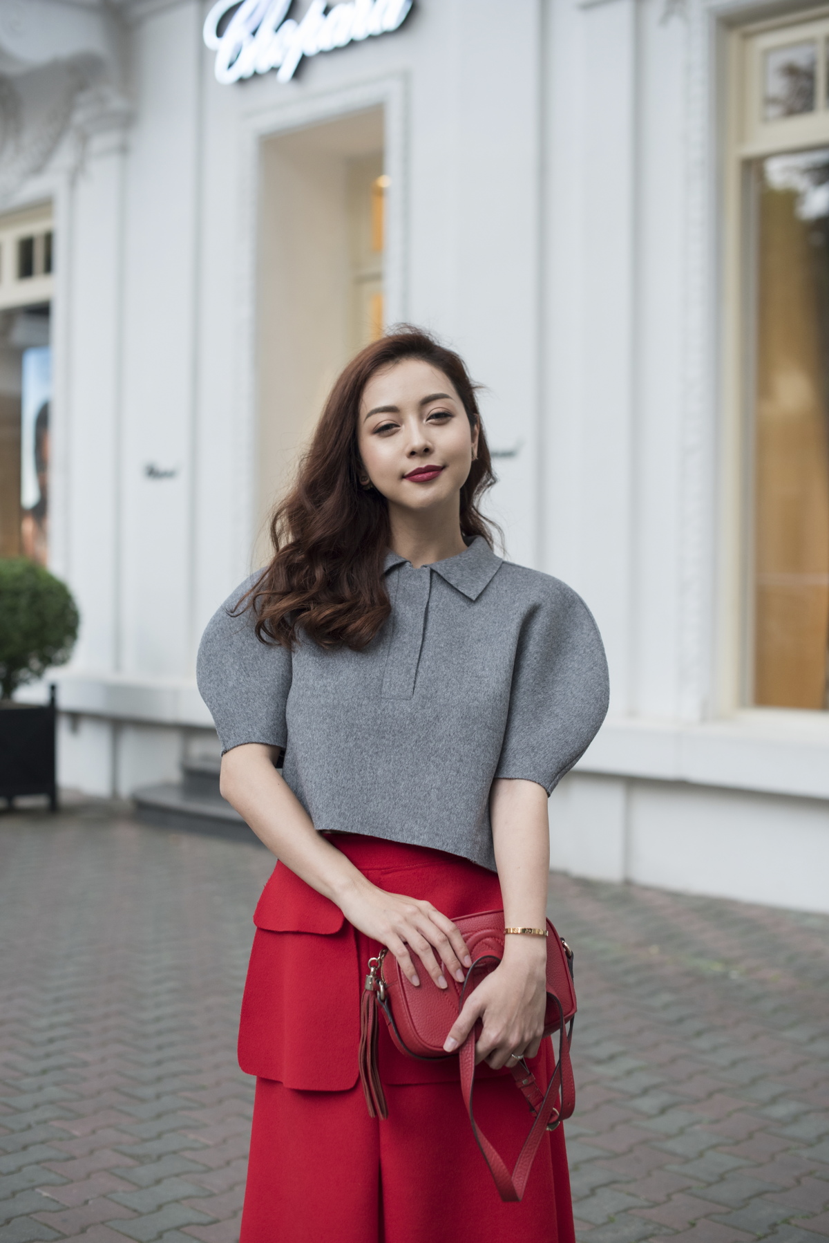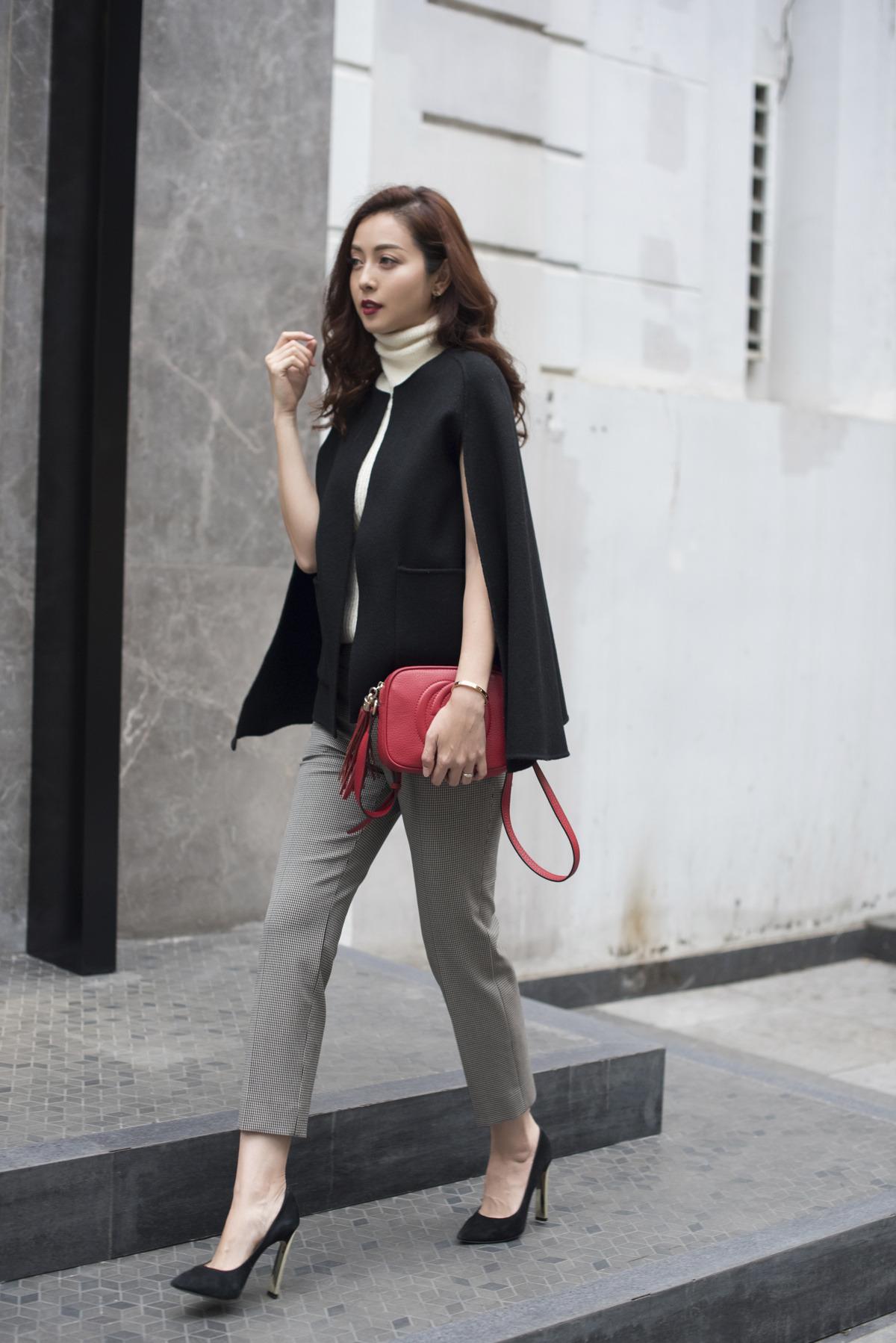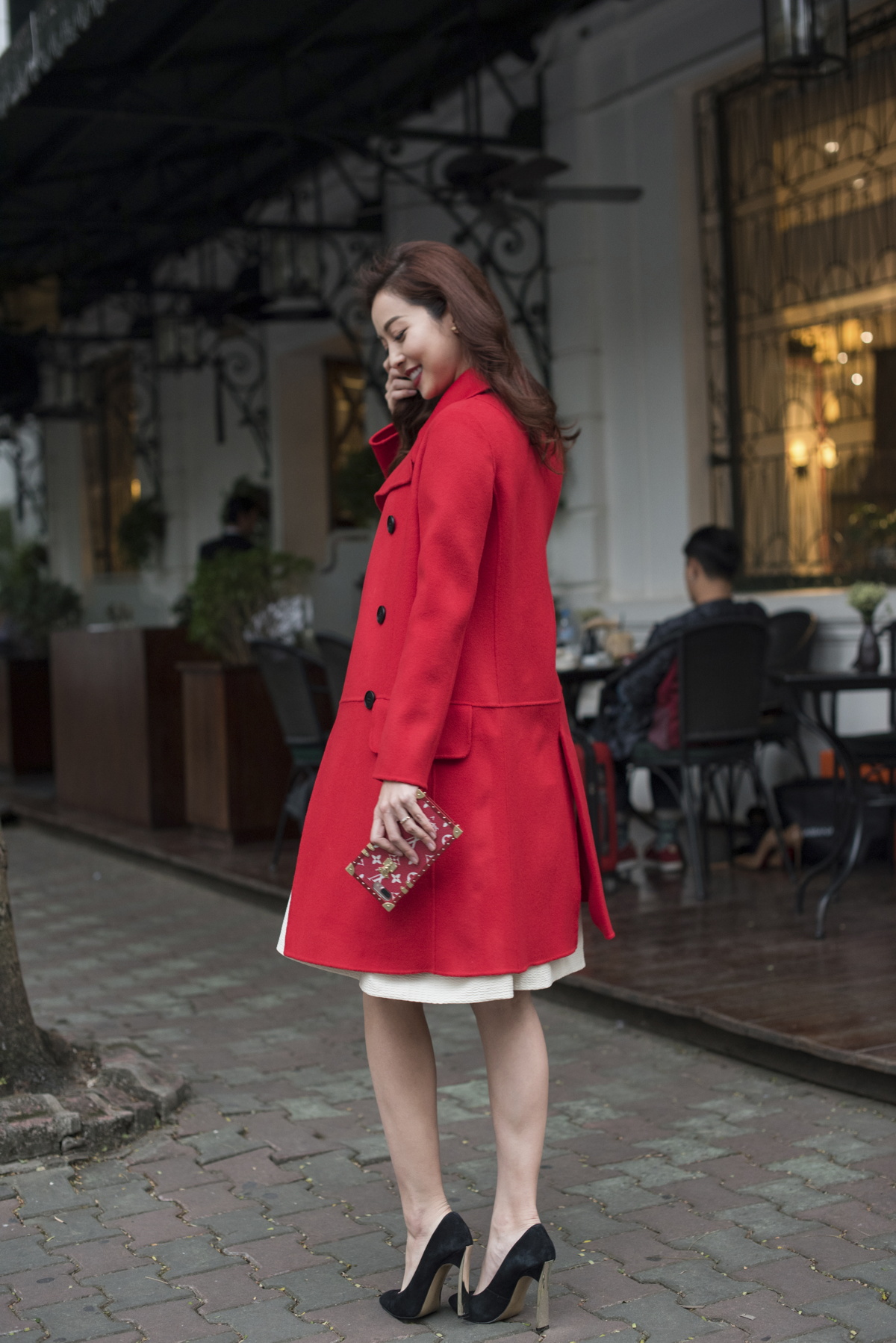 Kết hợp cùng chiếc áo khoác dài thì Jennifer Phạm đã mang đến một câu chuyện khác, nữ tính mà không hề nhàm chán.